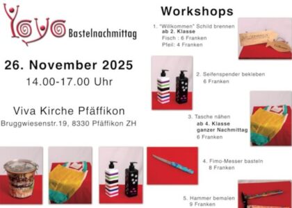 Am 26. November 2025 findet der grosse Bastelnachmittag in der Viva Kirche Pfäffikon ZH statt.